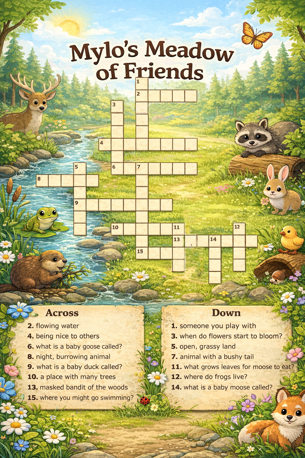 Mylo’s meadow adventure with friend crossword